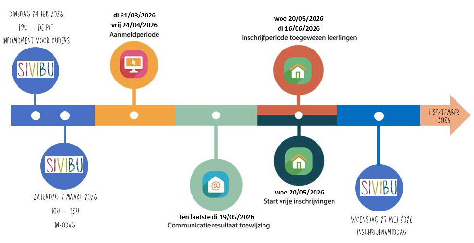 Wettelijk is bepaald dat inschrijven/ aanmelden voor schooljaar 2026 - 2027 digitaal moet gebeuren. Omwille van de capaciteitsbepaling op onze school (160 inschrijvingen in het eerste leerjaar A) werken we met een aanmeldingssysteem. Iedereen die interesse heeft in onze school en zijn zoon/ dochter wenst in te schrijven, moet zich tussen 31 maart en 24 april aanmelden. Hoe dit concreet moet gebeuren en wat de verdere stappen zijn, worden op de verschillende infomomenten en via de website later verduidelijkt.